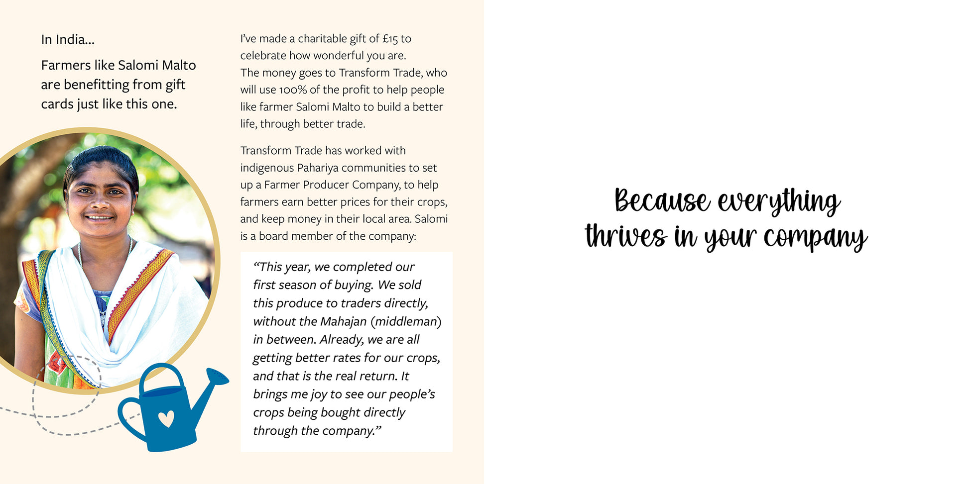 Message inside: Because everything thrives in your company