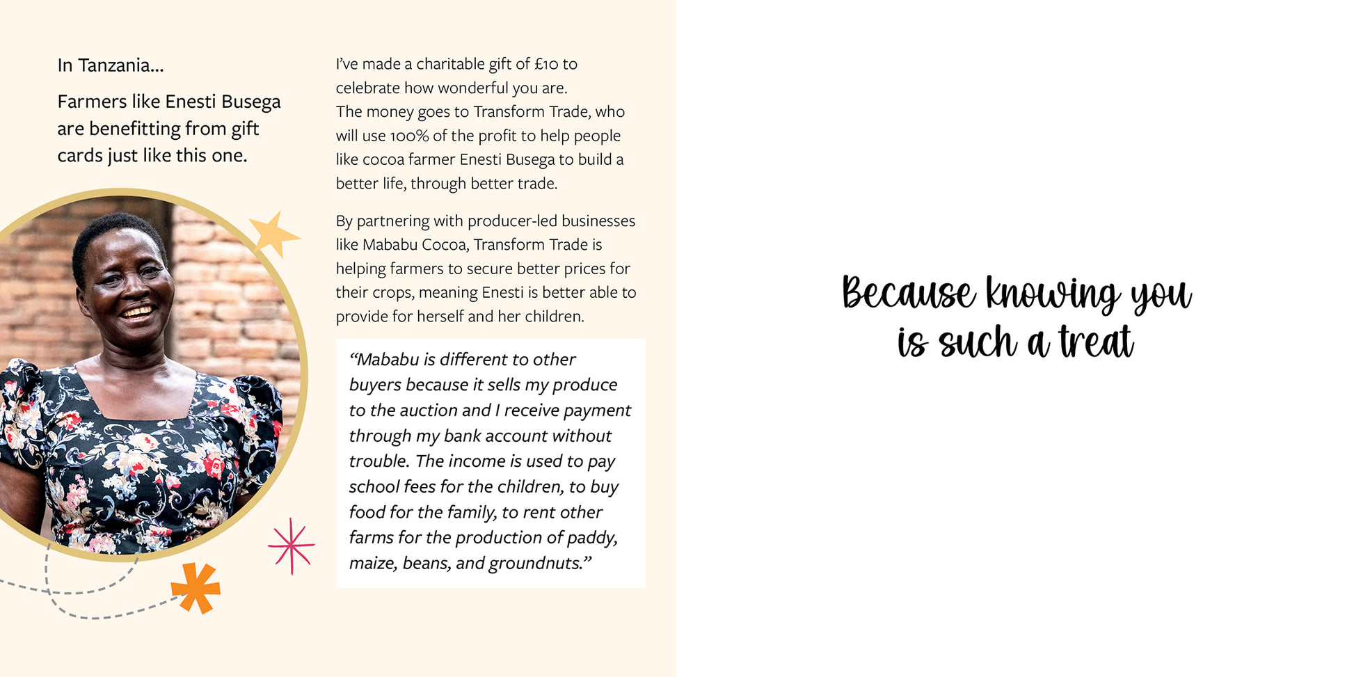 A delivery charge of £3.95 will be applied for any order containing up to £75 of Christmas cards, greetings card and physical Gifts for Life cards. For £75 and over, delivery of those cards is FREE.