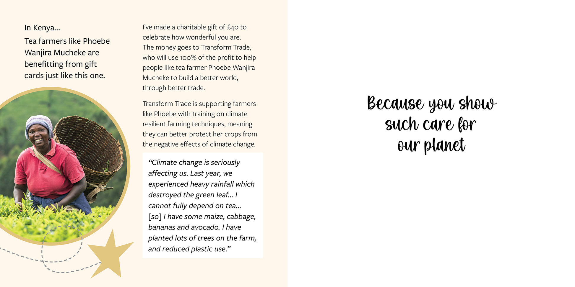 Message inside: Because you show such care for our planet